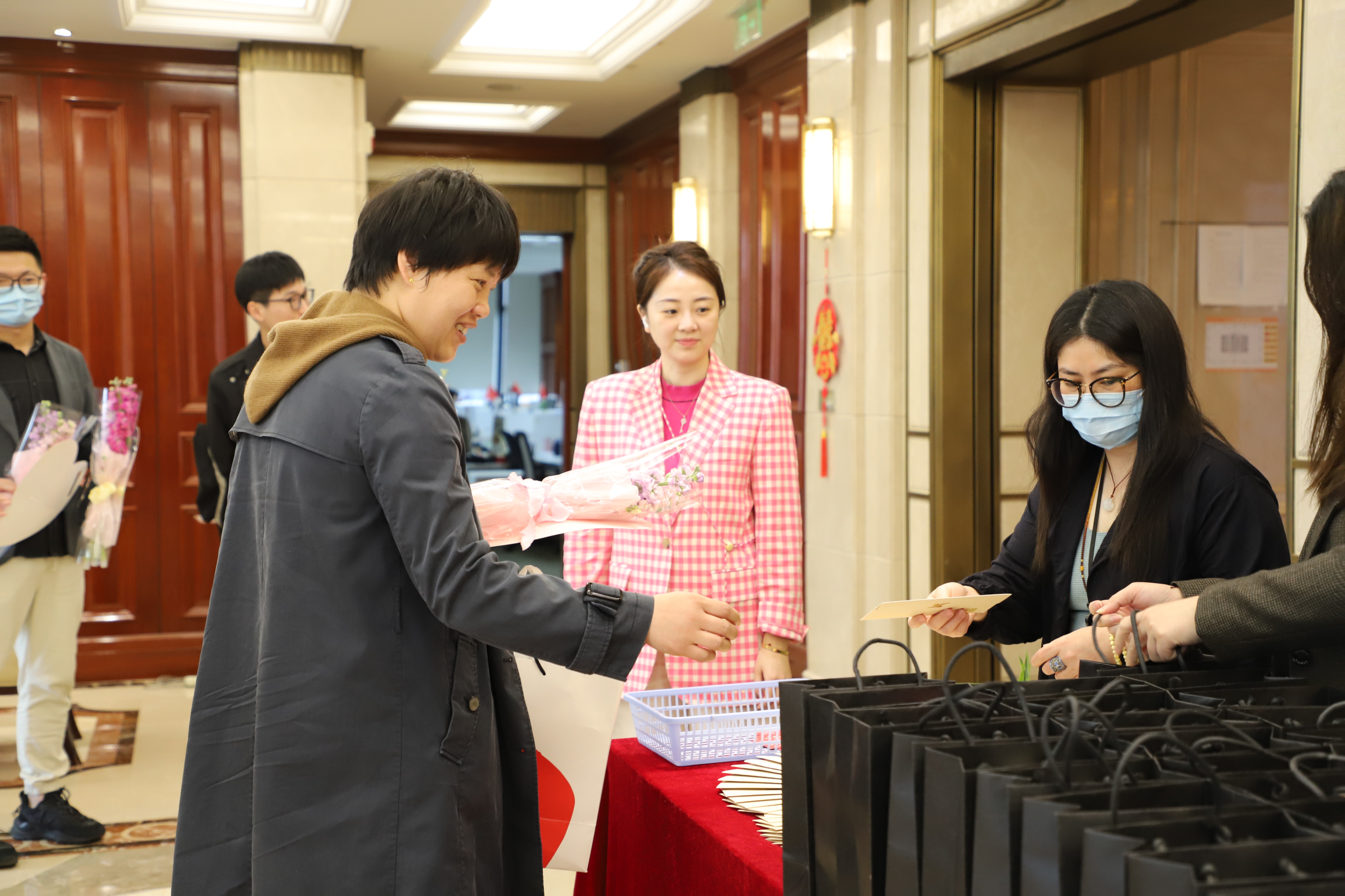 公司帅气的男同胞为女同事们送去了节日花束、节日祝福,还有专属定制的“遇见美好”小礼品。“你们真的太有心了,突然感觉今天的上班都变得有仪式感了。”一位热联女员工表示。