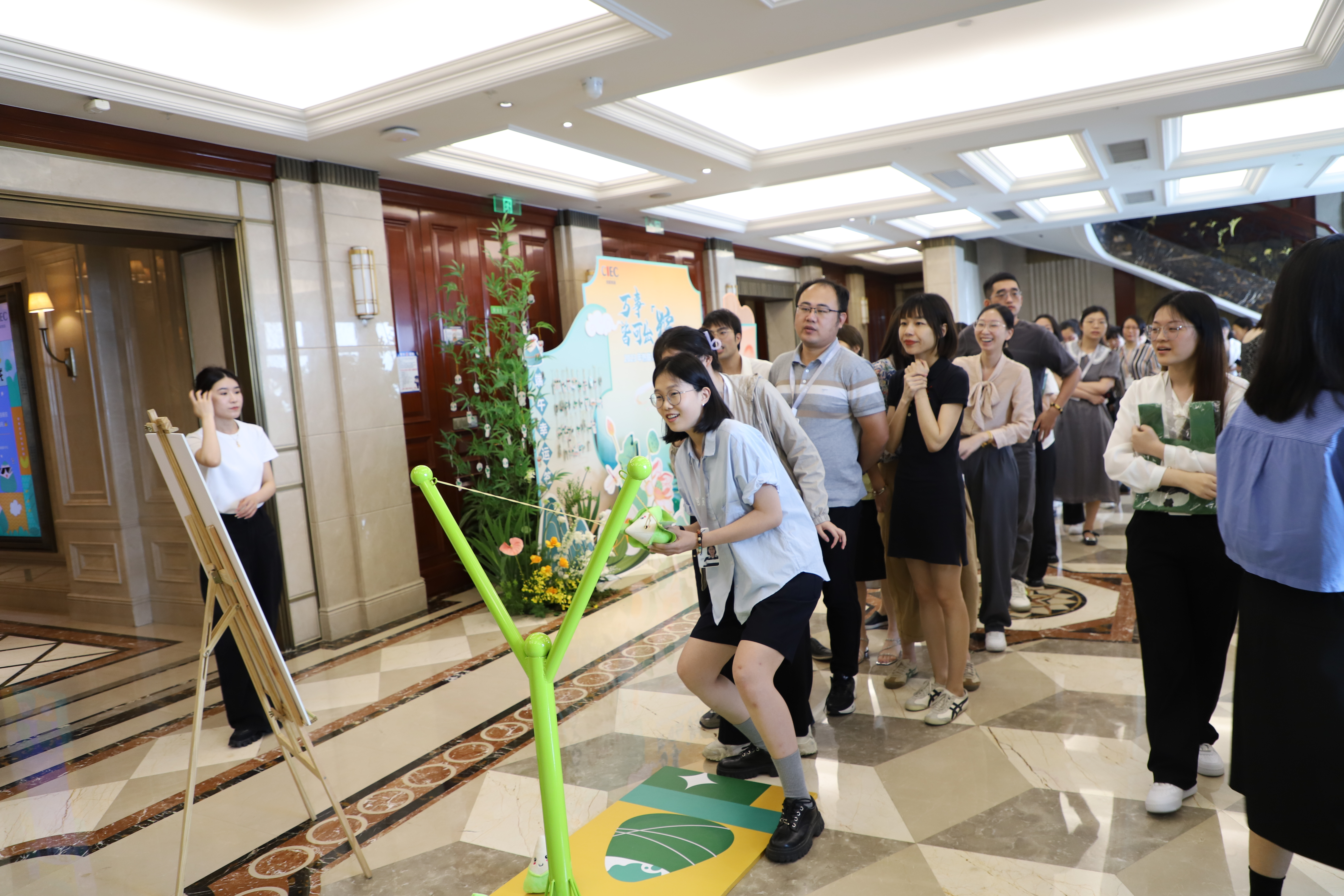 本次端午主题活动分别在公司汉嘉国际、泛海国际以及热联唐山进行了端午氛围布置,为员工准备了端午相关的小礼品,现场还开展了“端午击‘粽’你”主题小游戏,员工可通过参与小游戏获得纪念品。活动在午休期间开展,前来参加的员工应接不暇,其乐融融,节日氛围浓厚。