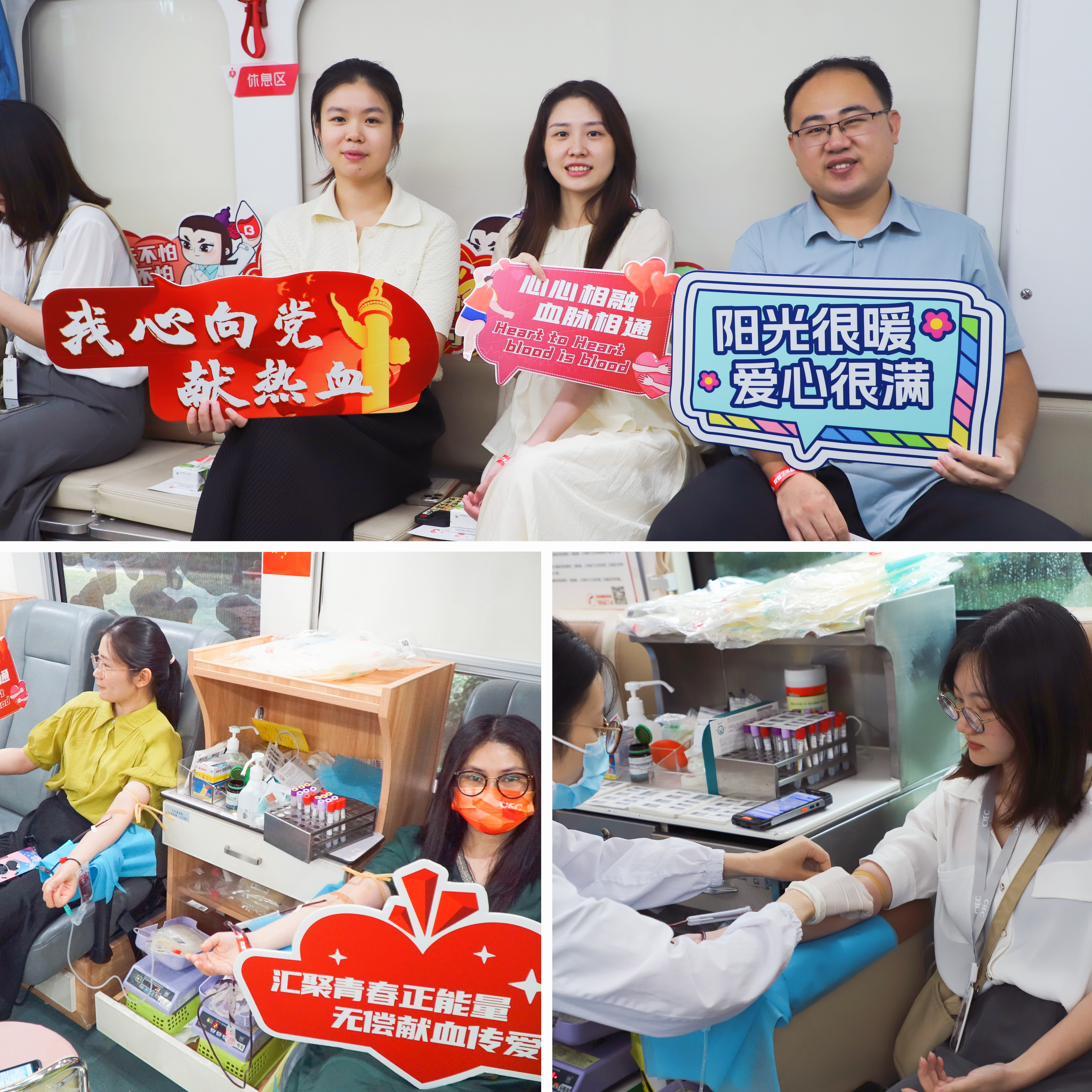 献血现场,各位员工在工作人员的引导下,有序填表登记、量血压、抽血化验,积极配合做好献血前的各项准备工作。在检查合格后,依次登上献血车进行采血,以热血奉献爱心,传递正能量。