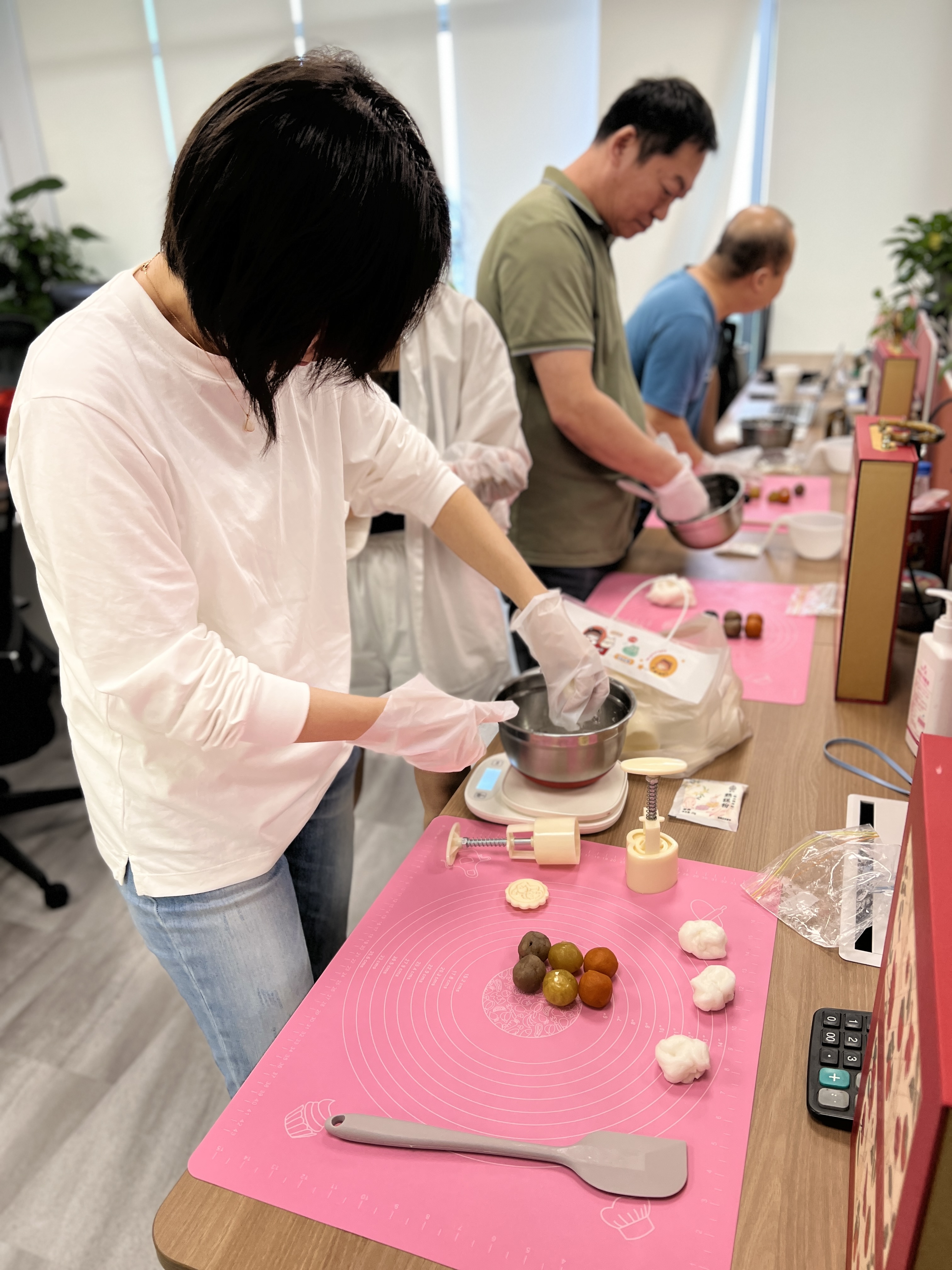 同时,在汉嘉国际35楼培训中心和泛海国际A座9楼培训室还特别设置了DIY中秋糕点活动,共有150多名员工参加了本次活动。在手作师傅的指导下,很多第一次尝试制作糕点的员工,都顺利做出了一个个精美饱满的糕点。
