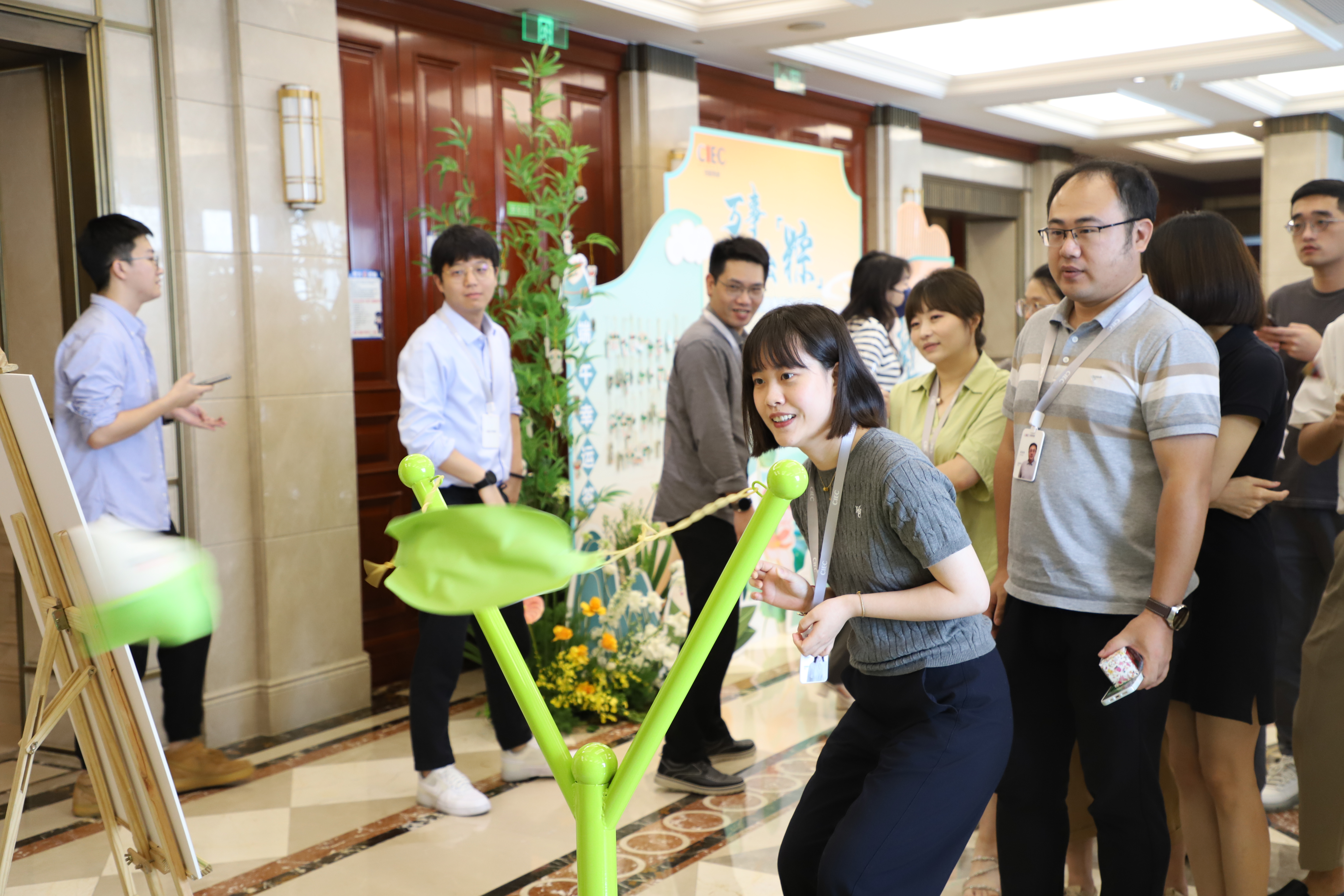 本次端午主题活动分别在公司汉嘉国际、泛海国际以及热联唐山进行了端午氛围布置,为员工准备了端午相关的小礼品,现场还开展了“端午击‘粽’你”主题小游戏,员工可通过参与小游戏获得纪念品。活动在午休期间开展,前来参加的员工应接不暇,其乐融融,节日氛围浓厚。