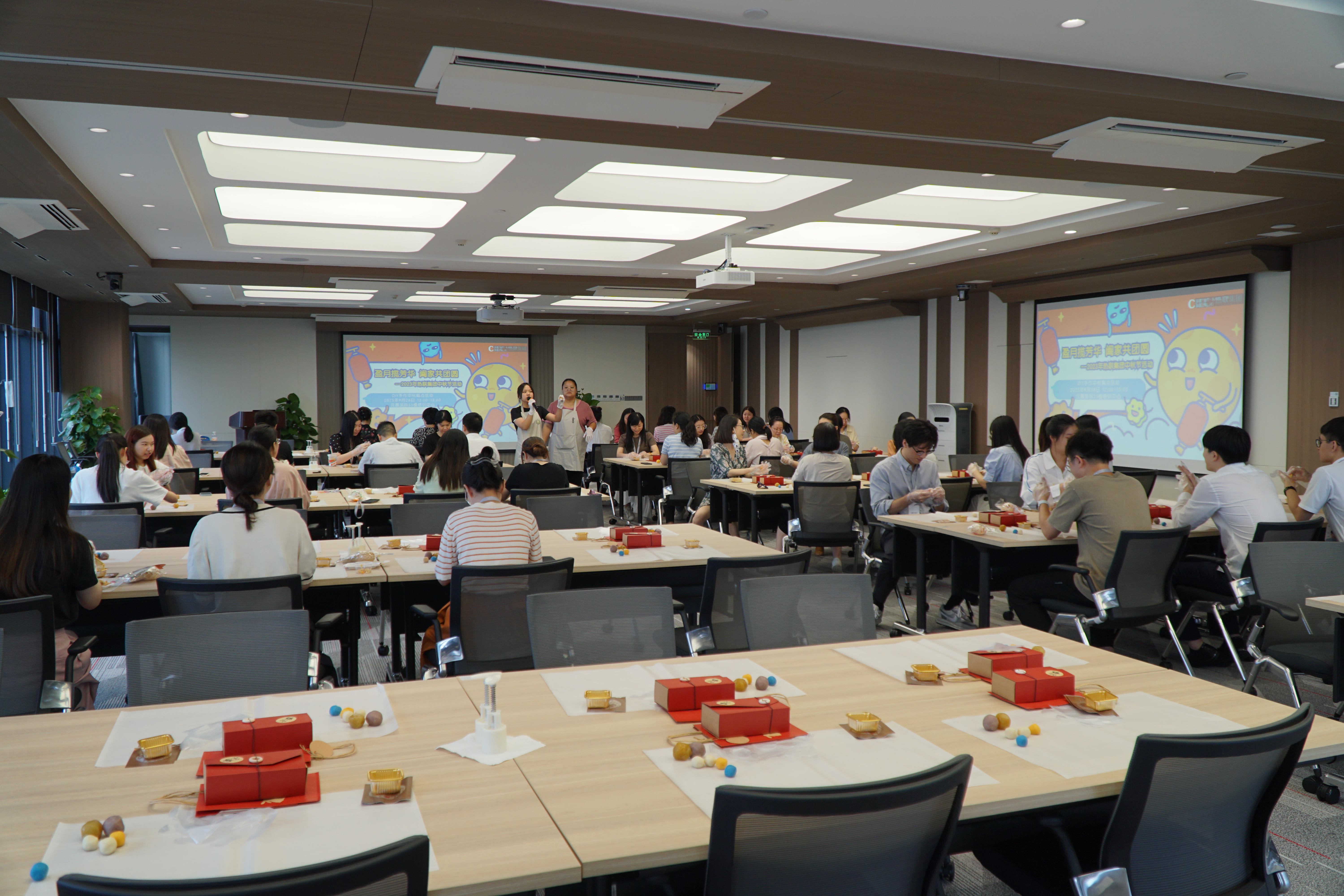 同时,在汉嘉国际35楼培训中心和泛海国际A座9楼培训室还特别设置了DIY中秋糕点活动,共有150多名员工参加了本次活动。在手作师傅的指导下,很多第一次尝试制作糕点的员工,都顺利做出了一个个精美饱满的糕点。