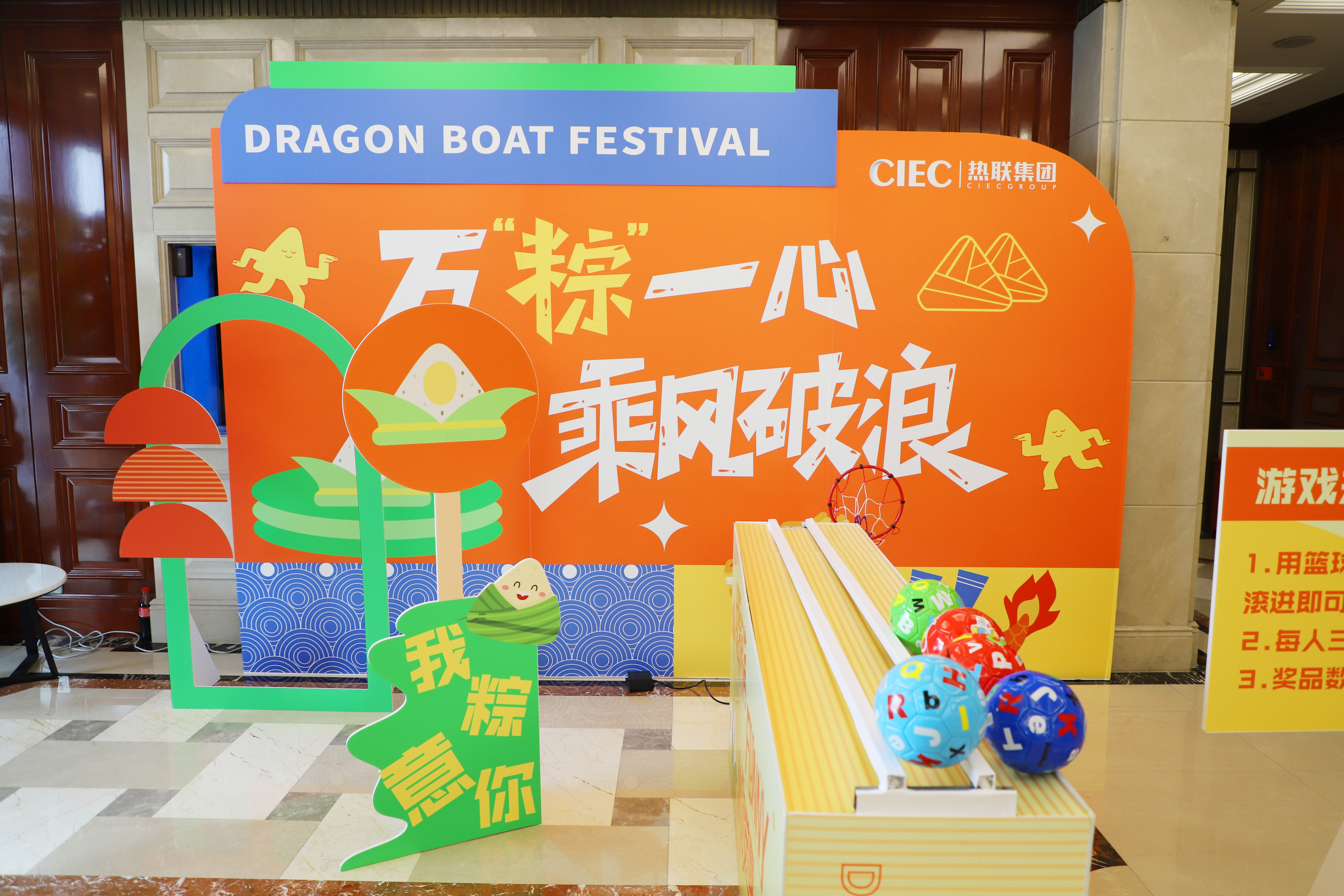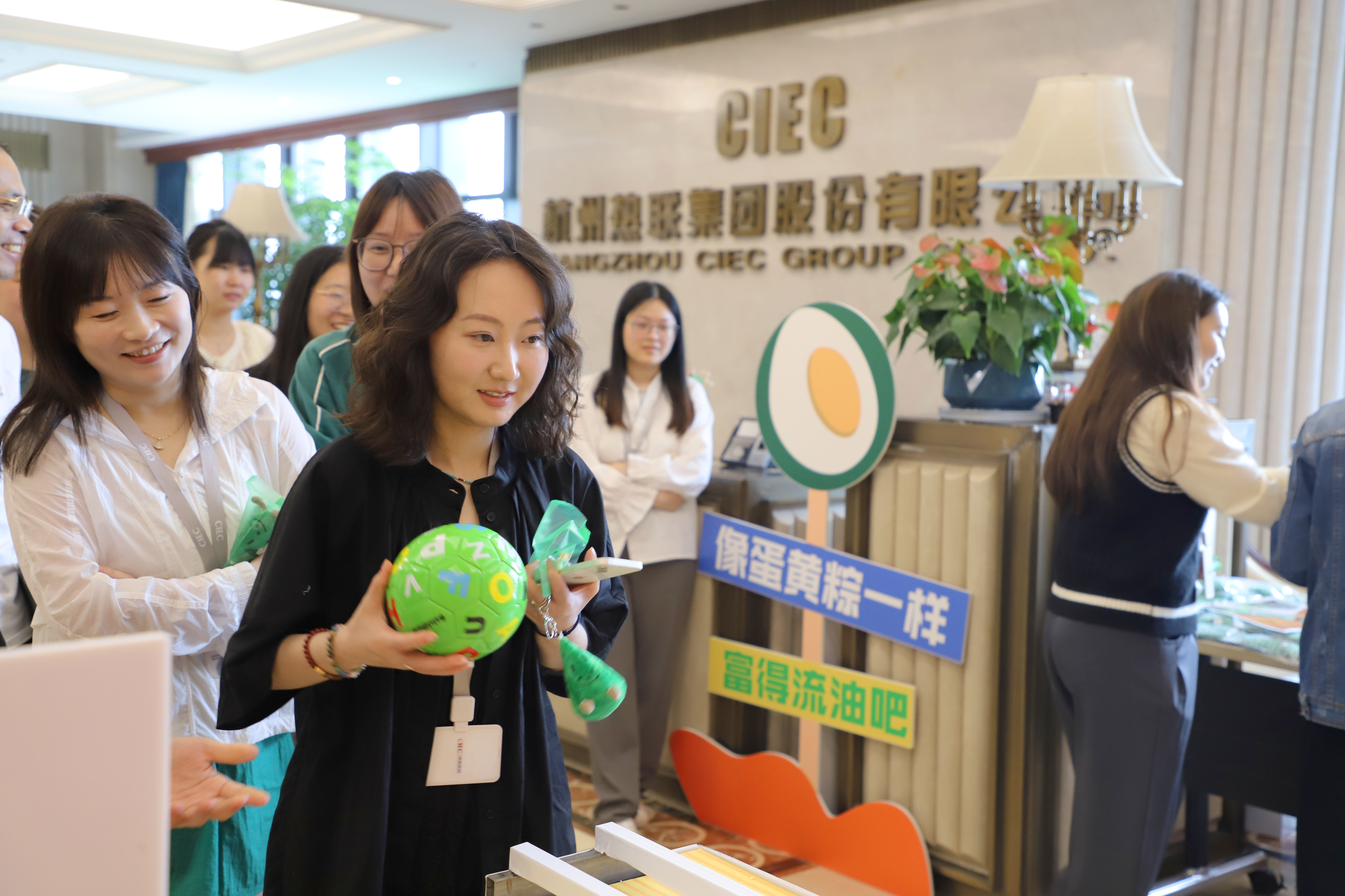 6月7日,活动在汉嘉国际25楼前台和泛海国际A座32楼前台同时举办,员工们齐聚一堂,共同参与了端午节活动。滚球小游戏作为本次活动的亮点,吸引了许多员工积极参与。大家在排队的同时也在激烈探讨着游戏技巧,现场的氛围紧张而热烈。游戏虽简单易上手,却也是技巧和运气的双重考验。经过不断尝试与挑战,大多数员工都成功进球,赢得了自己心仪的礼品。
