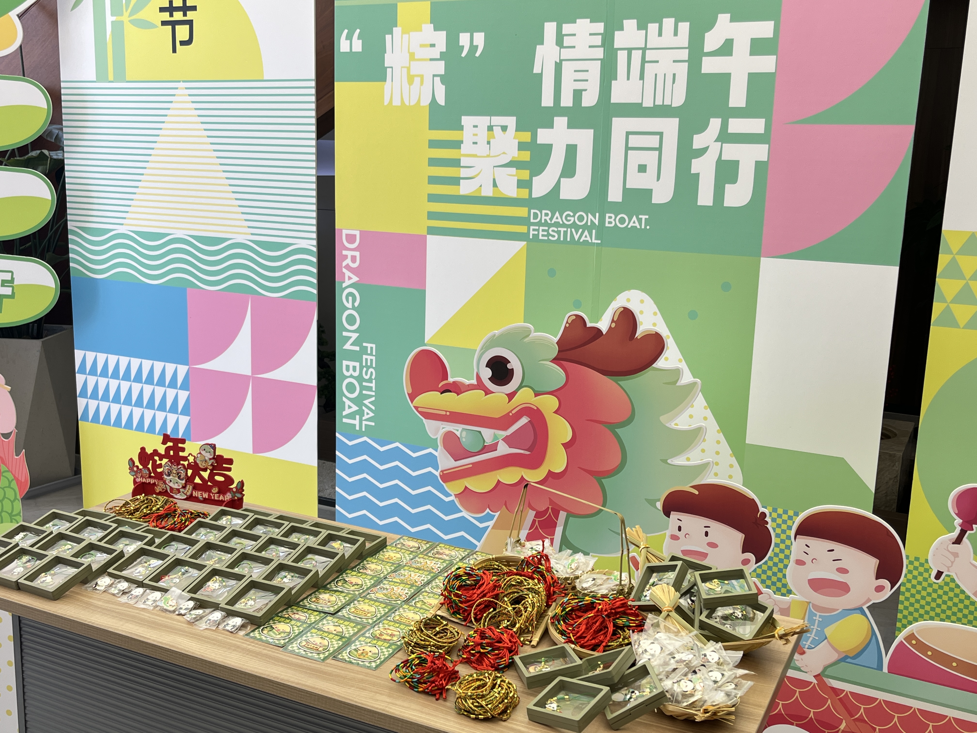 活动现场以端午元素精心布置,处处洋溢着浓郁的节日氛围。五彩斑斓的端午手链和造型精巧可爱的粽子形挂饰尤为吸睛,深受员工们喜爱。此次活动特别设置了会玩才出“粽”投球挑战游戏,参与者将小球滚落至下方奖区,即可赢取对应奖品。游戏规则简洁明了,却巧妙融合了技巧、运气与趣味性,吸引了众多员工踊跃参与,现场迅速排起了长队,气氛热烈。大家围聚在游戏区旁,为参与的同事加油喝彩,不时交流着自己总结的投掷 “秘籍”。当小球精准落入奖区时,现场响起阵阵欢呼声;即便未能获奖,参与者也在一次次尝试中尽情享受游戏带来的乐趣,端午节的温馨与快乐在此刻交融升温。