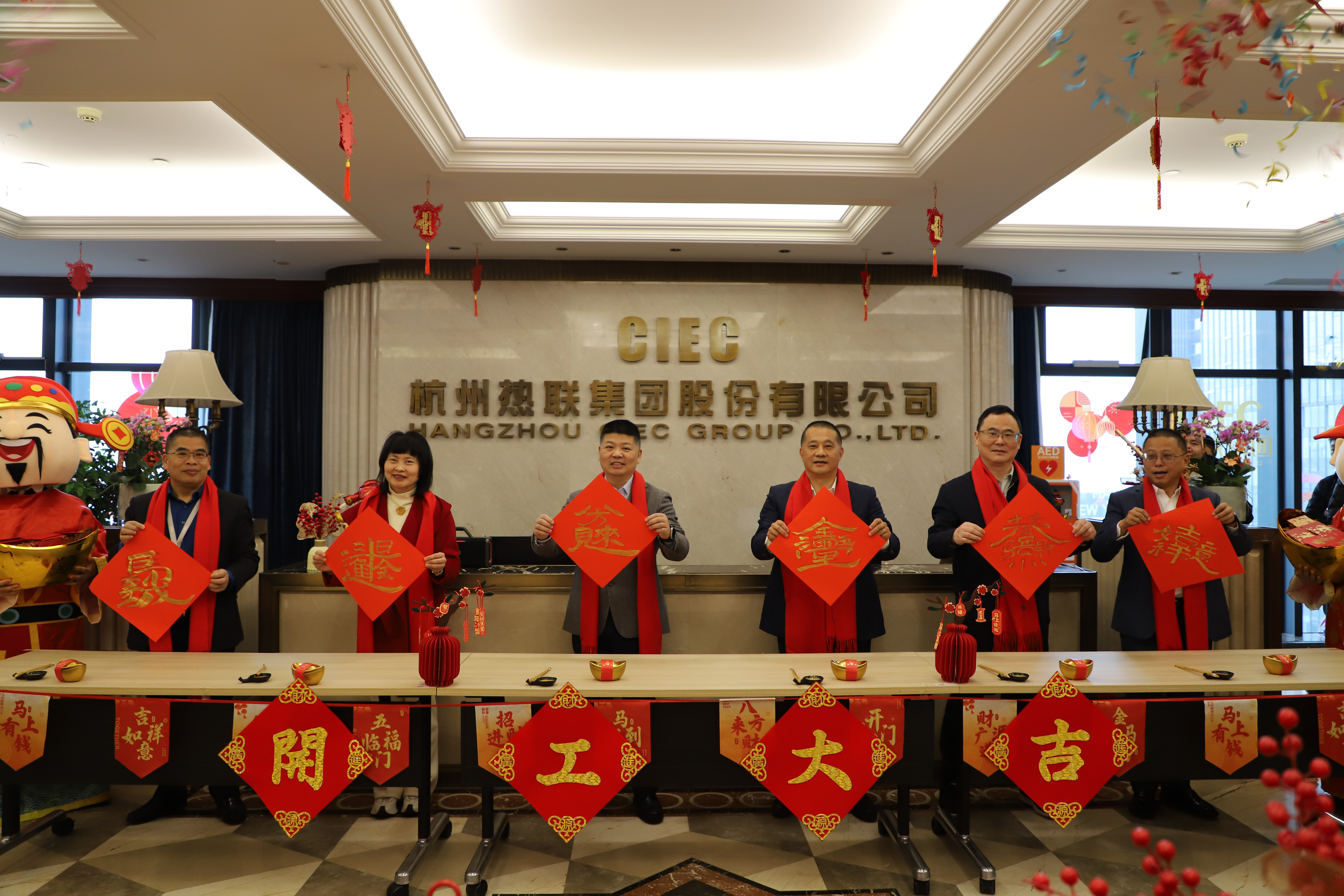 活动伊始,集团领导一同参与了“描金纳福”环节,于卷轴之上挥毫描金,书写象征吉祥奋进的祝福语,寓意热联人将以笃定的目标与坚实的步伐,携手绘就新一年的发展蓝图。随后礼炮齐鸣,传递出“开门大吉”的美好祝愿,也为新一年的奋斗征程奏响序曲。